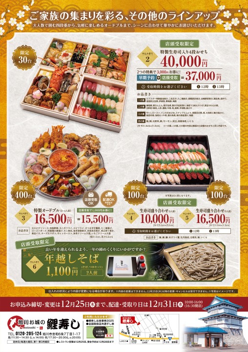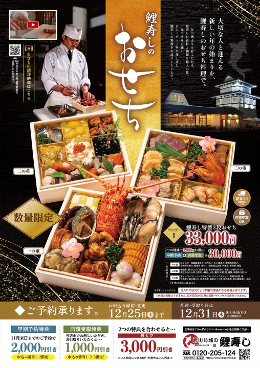 ②特製生寿司入4段おせち 40,000円(引取限定 12時・13時)